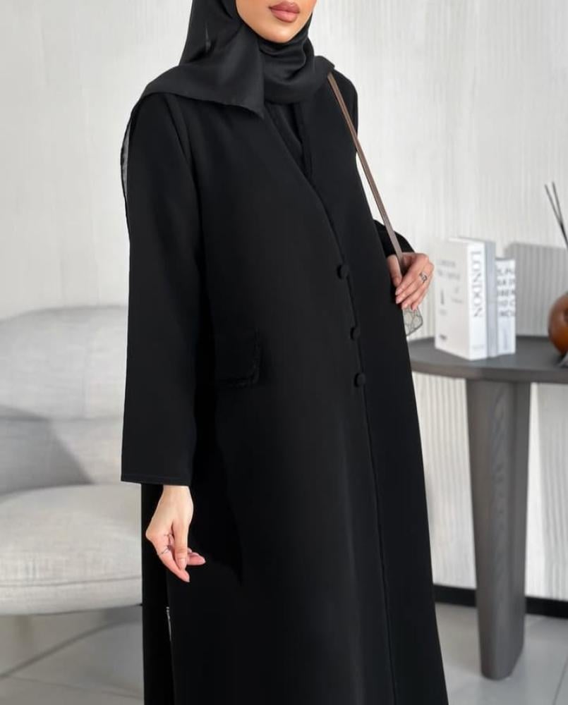 - تصميم الكتف الأنيق يبرز جمال القصة ويعطي العباية طابعًا عصريًا مميزًا.