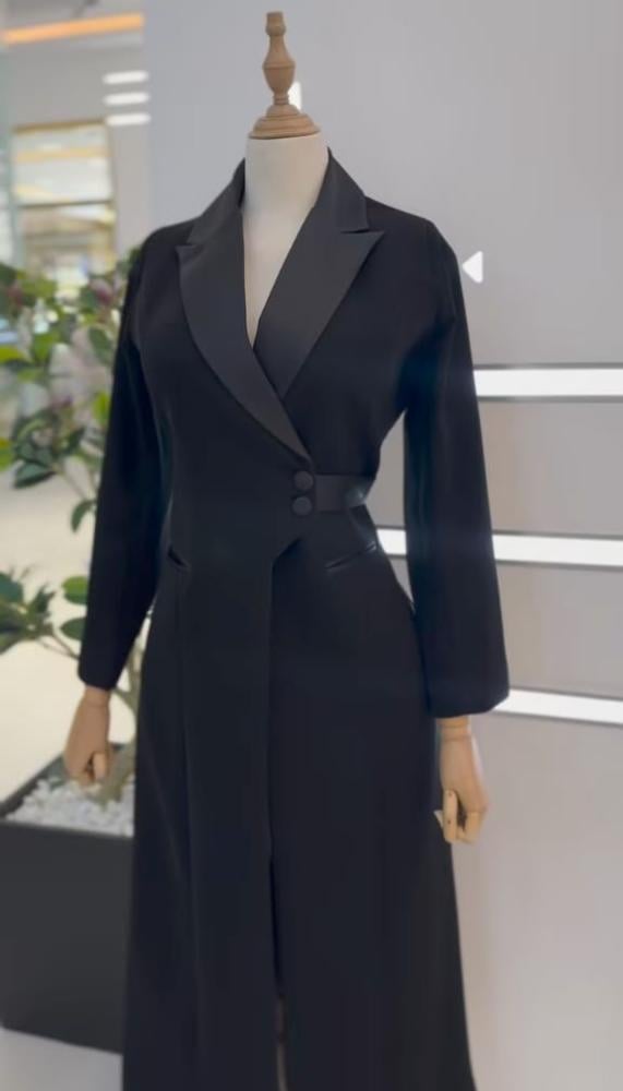 - تصميم بليزر يضفي لمسة من الرسمية على إطلالتك، ويجعل العباية مناسبة لأوقات العمل والمناسبات.