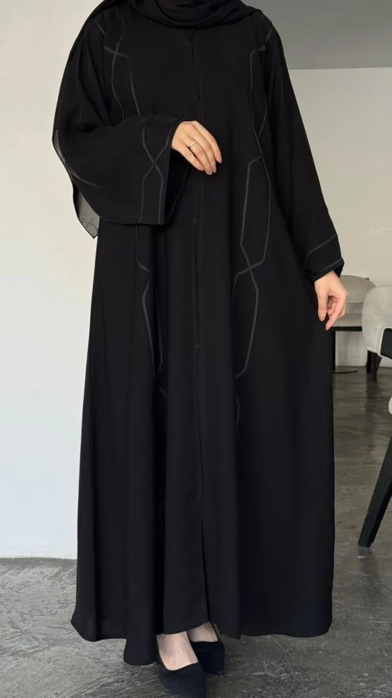 عبايه سودا تجمع بين البساطة والرقي، تزيّنها لمسة من القيطان الفاخر باللون الأسود الممتد برشاقة على طول التصميم ليضفي عليها تفاصيل أنيقة تلفت الأنظار ، صُممت بقصّة مستقيمة انسيابية تمنحك إطلالة راقية دون التنازل عن حرية الحركة ، نُفّذت من قماش كريب كوري فاخر يتميز بملمسه الناعم وجودته العالية التي تدوم طويلًا دون تجعّد وتأتي العباية مرفقة بطرحة من نفس القماش لتكتمل أناقتك في جميع مناسباتك الرسمية واليومية ، تسوّقي الآن من متجر سدن واحصلي على خصم مميز على عبايتك السوداء – العرض لفترة محدودة فلا تفوّتي الفرصة .