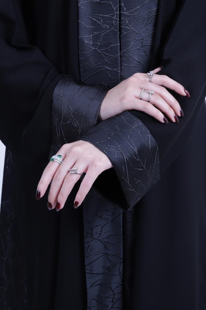 - تتميز عباية سدن بتدخيله أنيقة على الكم والجوانب لمسة ناعمة تعزز من جمالية التصميم وتمنحه طابعًا فريدًا.
