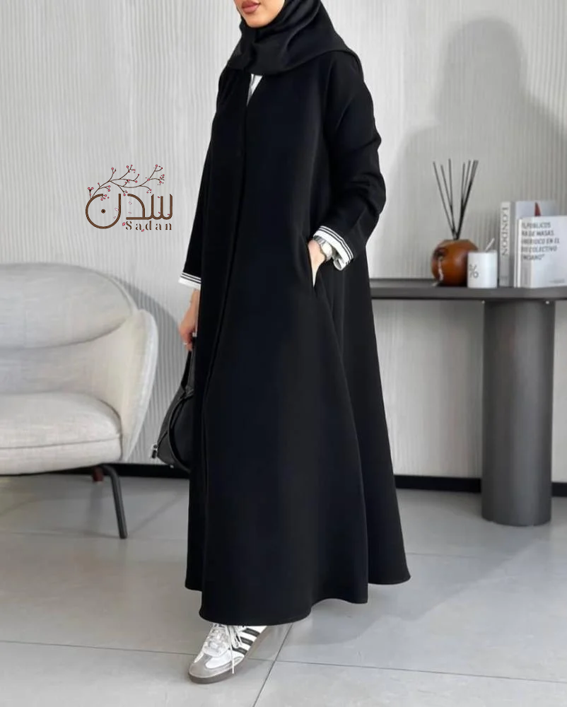 عباية عملية تمتعي بإطلالة أنيقة وعملية مع هذه العباية المميزة من متجر سدن ، تتميز عباية سدن بتصميم مميز على الكم الأبيض الذي يضيف لمسة من الجمال البسيط  إلى جانب وجود جيوب عملية تمنحك الراحة والمرونة ، كما أن تصميمها على شكل بليزر أنيق مع قصة واسعة يجعلها مثالية للمناسبات المختلفة و للاستخدام اليومي ، مع قماش كريب الذي يوفر لكِ الراحة طوال اليوم.